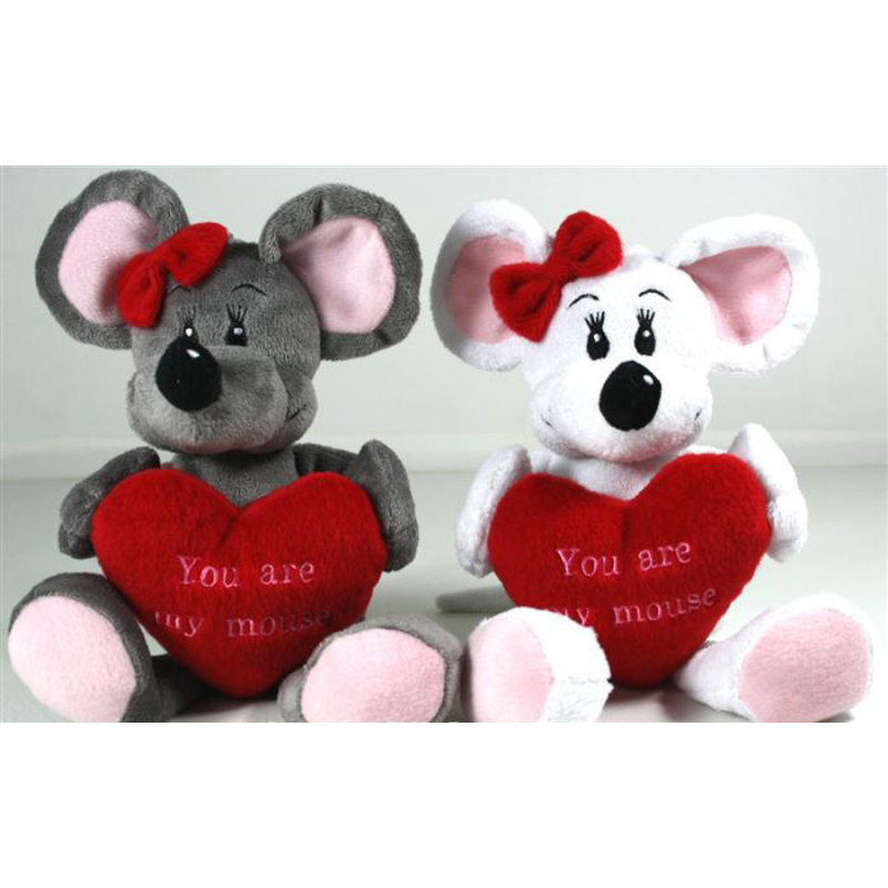 Mouse with heart, 16cm, “U are my mouse”, grey/white asst.