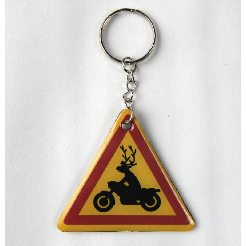 Keyring, reindeer on motorbike warning