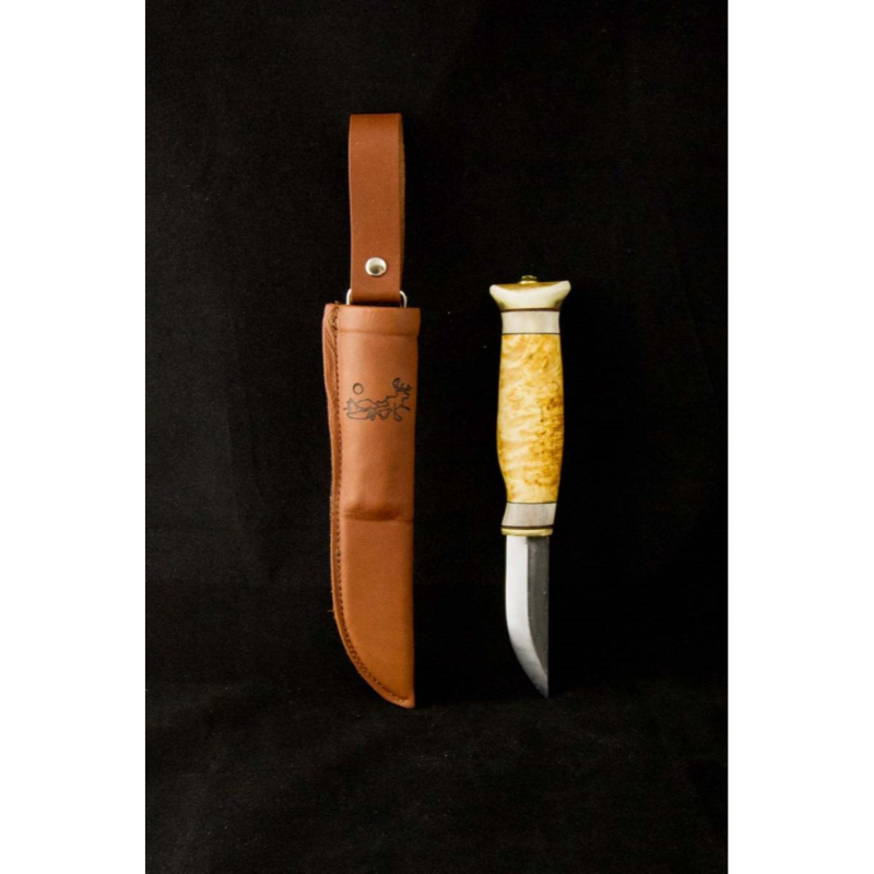 Knife, curly birch and reindeer horn, 7,7cm blade