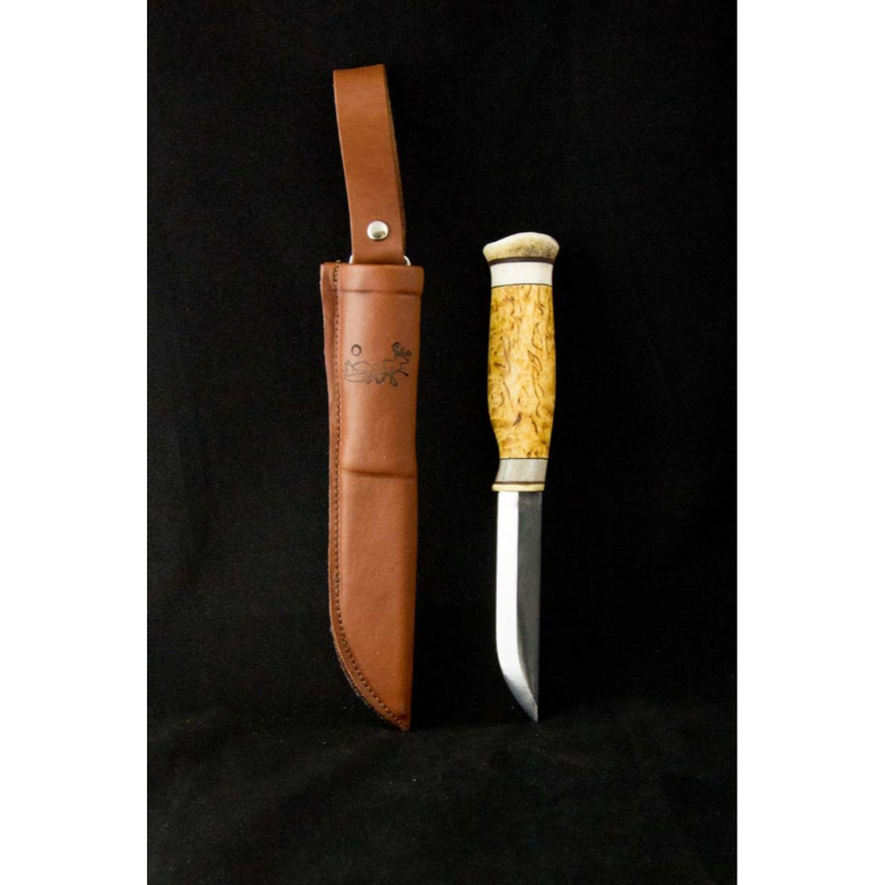Knife, curly birch and reindeer horn, 10,5cm blade