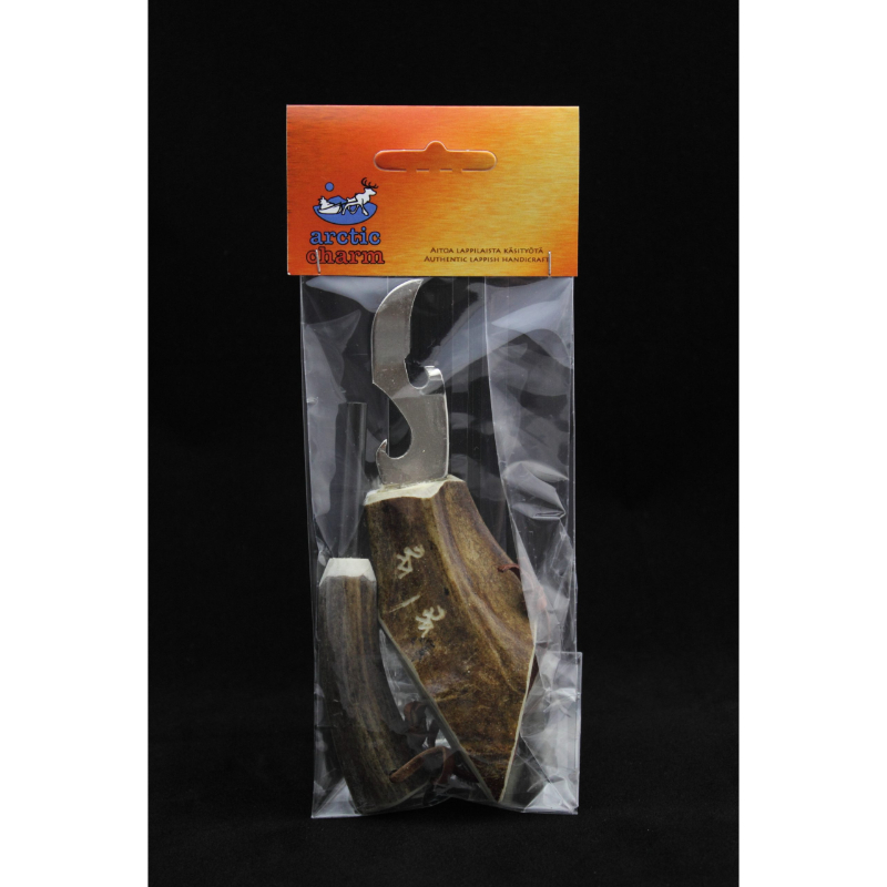 Fire starter, magnesium, with can/ bottle opener, reindeer horn