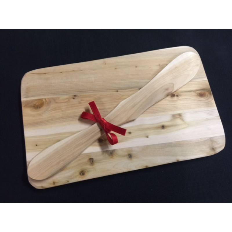 Sandwich plate with butter knife, juniper, cellophane bag